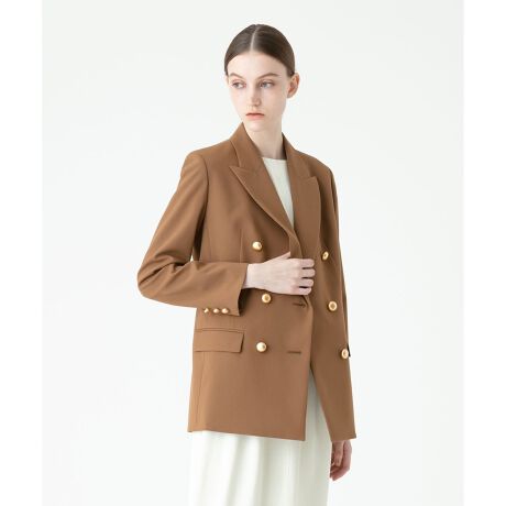 ポルトガルのリオペル社のT/Rオックスを使用したダブルブレストジャケット。6つの釦と大きめのピークドラペルで、よりマニッシュなデザインに。トレンドの立体感のある釦でディティールで変化を付けています。ショートパンツやミニスカートなどの90年代風なアイテムがトレンドの今シーズン、活躍間違いなしの一着。