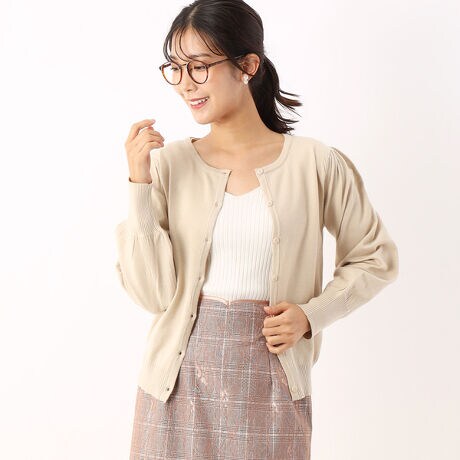 秋冬に注目したいポイントカラーの展開が豊富な丸首カーディガン。