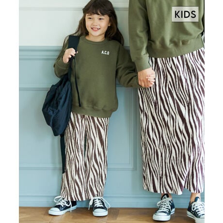 【キッズ】【親子お揃い】ゼブラ柄 ベロアプリーツパンツ