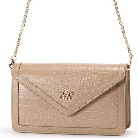 ヴィンテージ調クロコのエンボスがおしゃれなショルダーバッグが登場。裏地はオリジナルのモノグラム柄を使用しており、内装にもこだわりました。高級感溢れるチェーンショルダーで上品な装いに。