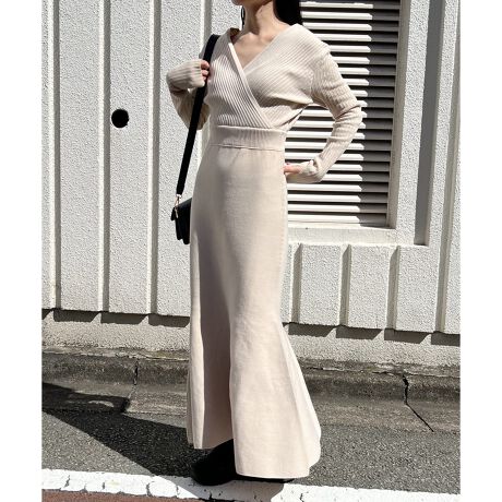 しっかりロング丈のマーメイドニットワンピース。
