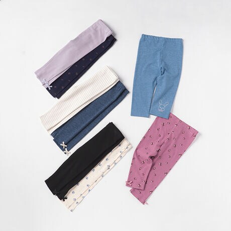 デイリーから通園通学まで重宝するレギンスセットです。2枚それぞれの柄パターンや風合いを変えて、気分に合わせてコーディネートに取り入れられるようデザイン。ストレッチ性があるため動きを妨げず、快適な動作を実現してくれます。ワンピースやチュニック丈のTシャツなどにインしたスタイリングがおすすめです。【透け感】透けない【生地の厚さ】普通【伸縮性】あり【裏地】なし【ポケット】なし【アジャスター】なし※(モデル画像1枚目)モデル身長:97.5cm 着用サイズ:100(モデル画像2枚目以降)モデル身長:86cm 着用サイズ:90