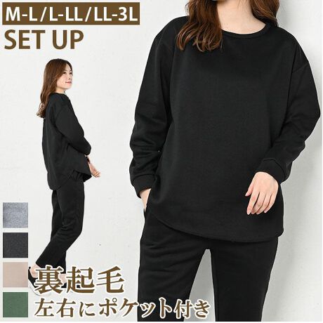 【商品名】 裏起毛ロングパンツ セットアップ レディース