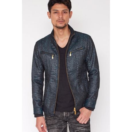 ワイルドなクロコ柄のジャカードを使用したスタンドブルゾン。