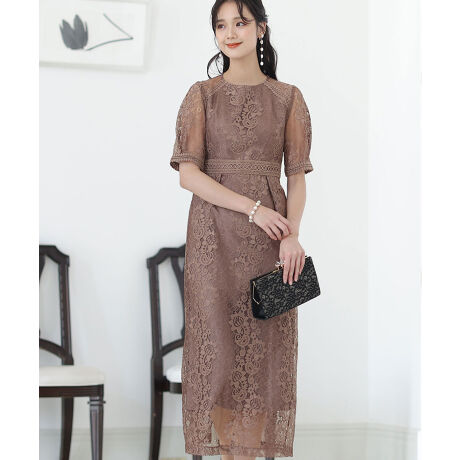 Iラインシルエットが大人の女性らしい雰囲気を演出します。ハリ感のあるレース生地で高見えします。