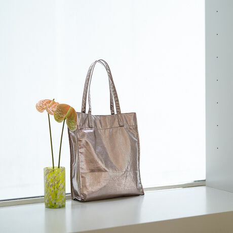 スタイリングを選ばないシンプルなデザインのトートバッグ。柔らかく薄いつるりとした素材が存在感のあるトートバッグ。