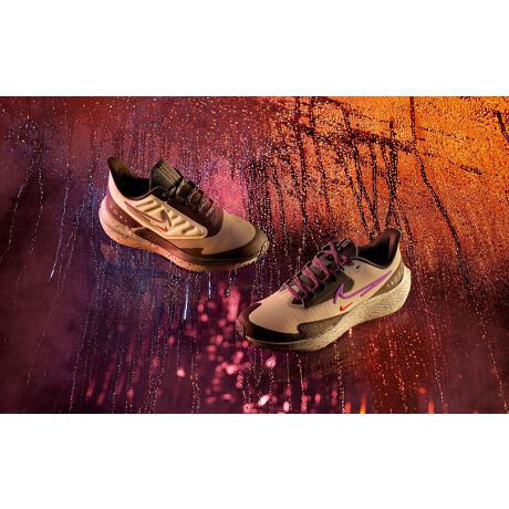 悪天候でもあきらめる必要はありません。 天気が悪くても外に出て、大いにプレーしましょう。このデザインは、水たまりやコンディションの悪い路面をものともせず、小休止や自己記録達成の瞬間にも皆さんのお供をします。 撥水加工を施し、タイヤのようにあらゆる地形に対応したトラクションとストームトレッドのアウトソールで大雨の中をスピーディーに走破。内側のフリース素材が心地良い肌触りを提供し、ヘザーの裏地とAeroloftテクノロジーをヒントにしたしっかりとした断熱素材という抜群の組み合わせが効果を発揮する一足です。