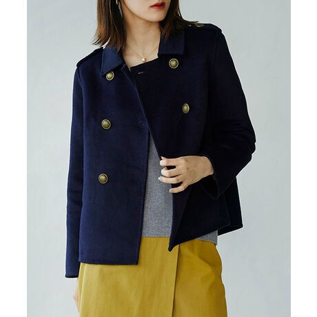 カッチリとしたデザインですが、ダブルフェイスならではの軽さと柔らかさでラフに着こなせます。