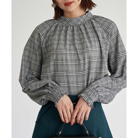 ・トラッドを意識したチェック柄ブラウス。