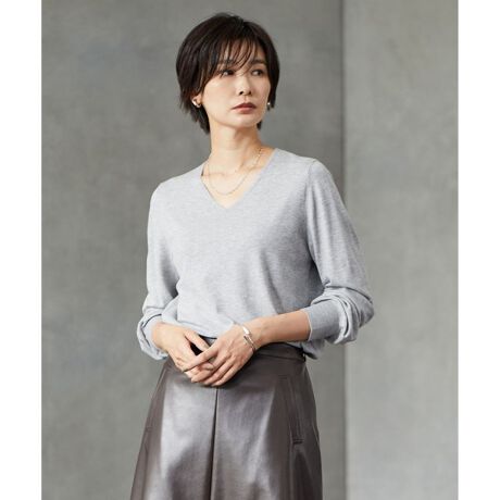すっきりとしたデザインの、シンプルな定番Vネックニット。開きすぎない安心の衿ラインも嬉しいポイント。着る人を選ばず、上品に着ていただけるアイテムです。