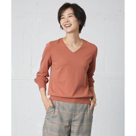 すっきりとしたデザインの、シンプルな定番Vネックニット。開きすぎない安心の衿ラインも嬉しいポイント。着る人を選ばず、上品に着ていただけるアイテムです。