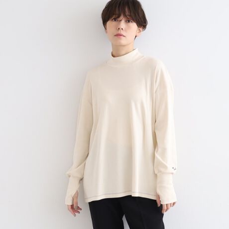 ハイネックとリラックスしたバランスでシックな印象を演出するデザインです。