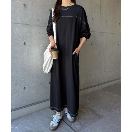 配色ステッチ オーバーサイズ 長袖 Tシャツ ワンピース