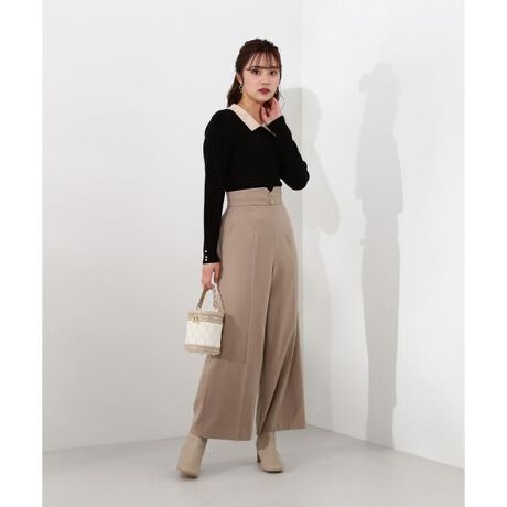 【商品特徴】フェミニンな表情の2Wayパンツです。プロポオリジナル柄で作ったレースの肩紐は、ベーシックなパンツを華やかに見せてくれます。肩紐は取り外し可能なので、シンプルなハイウエストパンツとしても着られます。センタープレスを入れた、程よいゆとりのあるシルエット。ウエスト部分のハートカットもポイントになります。左ファスナーあき。【スタイリング】ハイネックニットやクラシカルな雰囲気のボウタイブラウスにも着回しできます。