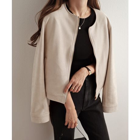 フェイクスエード ノーカラー ライダース ジャケット