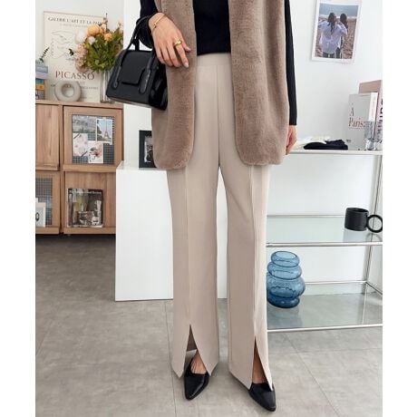 梨地ポンチ センタースリット パンツ