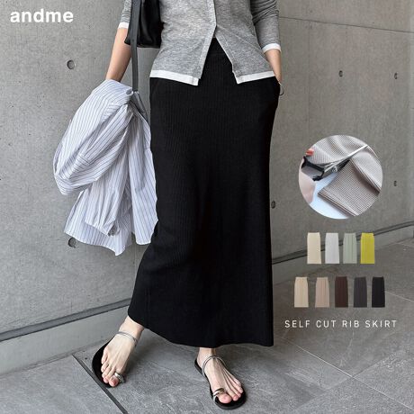 セルフカット リブ ロング タイトスカート