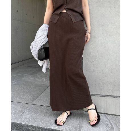 セルフカット リブ ロング タイトスカート