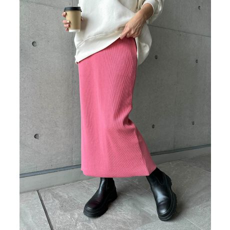 セルフカット リブ ロング タイトスカート