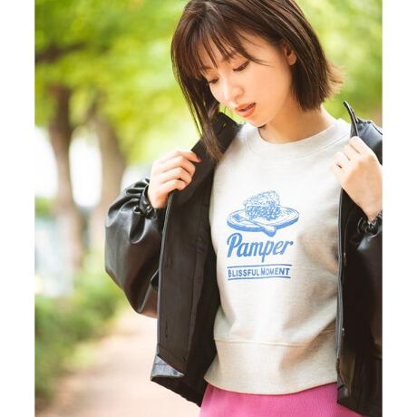 カラッとしたタッチの裏毛トップス。程よい厚みがありながらも軽く、これからの季節に使いやすいです。コンパクトなサイズ感なので、ボトムスにインしなくても着こなしが決まります。袖下に三角形のリブのマチを施し、こだわりのあるデザインにしました。トレンドの「チェリーパイ」モチーフのプリントで、キャッチーな印象です。※ロゴの意味・Pamper/ご褒美・Blissful Moment/至福の時間