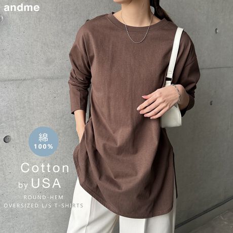 USA コットン 長袖 オーバーサイズ 裾ラウンド Tシャツ
