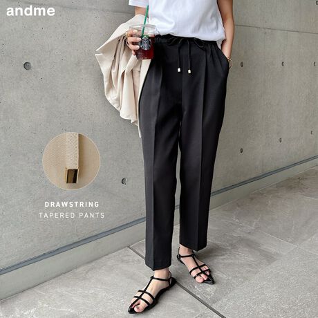 きれいめ ツイル 美脚 ドローストリング テーパードパンツ