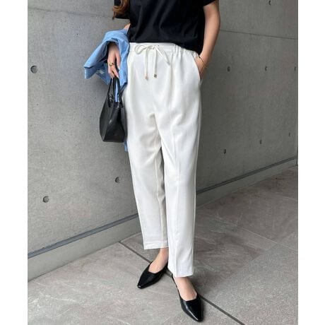 きれいめ ツイル 美脚 ドローストリング テーパードパンツ