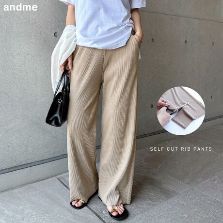 セルフカット リブ ワイド パンツ