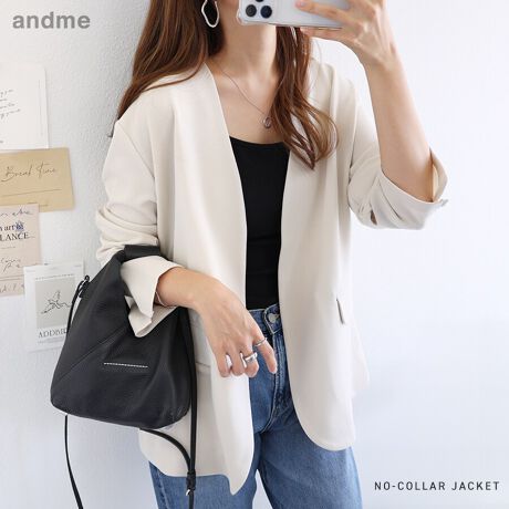 梨地 ポンチ ストレッチ ノーカラー ジャケット