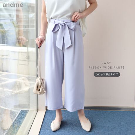 きれいめ ツイル リボン クロップド丈 ワイドパンツ