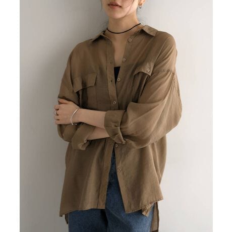 オーバーサイズ 長袖 シアーシャツ