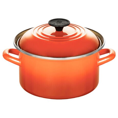 同サイズ(20cm)の鋳物ホーローウェアに比べると、重量が約1/2と軽いため、手軽にお使いいただけます。