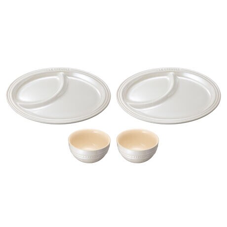 「マルチ・オーバル・プレート」は、仕切りがついており、ワンプレートごはんなどをおしゃれに演出できます。セットのライスボールと共に、ランチや夕食など日常的にも使っていただけます。