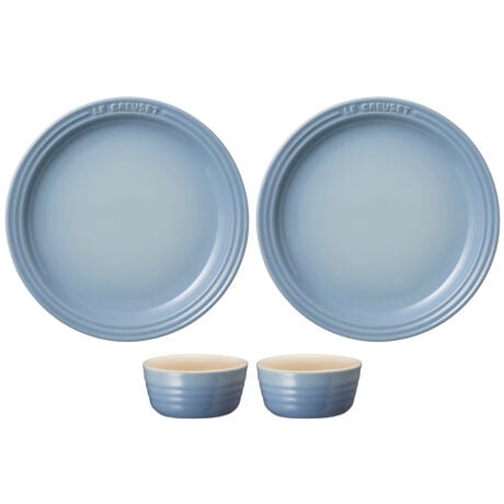 日常使いの用途として、「ラウンド・プレート」は、メイン料理やワンプレート料理の盛り付けに、セットの「プチ・ラムカン」は副菜に活用できます。