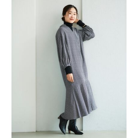 シーズンムードのクラシックな装いが叶う幾何柄デザインのワンピースです。