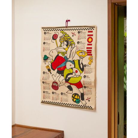 お祭りを楽しむ兎(うさぎ)たちが描かれた一枚絵の2023年カレンダー。愛らしい兎たちと一緒に、毎日を明るく楽しく過ごせますように。