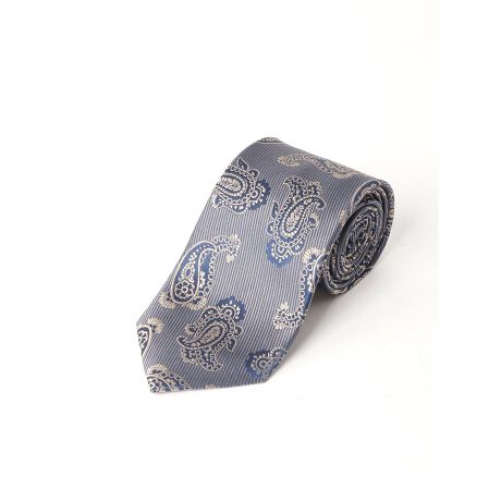 インディゴ風の組織に大柄のペイズリーを乗せています。経糸は紺、ベース組織の緯糸を2色ミックスにすることで立体感を表現しています。素材感のあるネイビーやグレー系のジャケットと相性抜群です。オンスタイルはもちろんプライベートのタイドアップスタイルにも大活躍してくれます。