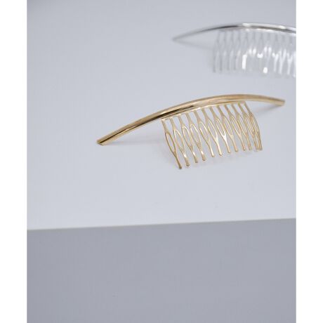 大きく湾曲したバーが頭に沿うようなデザインの、バックカチューシャ風ヘアカフ。サイドに付けたり、真後ろの少し下に付けたり、ヘアスタイルに新しい変化を付けたい時におすすめ。