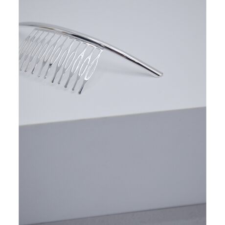 大きく湾曲したバーが頭に沿うようなデザインの、バックカチューシャ風ヘアカフ。サイドに付けたり、真後ろの少し下に付けたり、ヘアスタイルに新しい変化を付けたい時におすすめ。