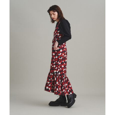 シーズンスタイルに映えるブロックチェックに心惹かれる、ベルト付きワンピース。凹凸感のある中肉素材に手描きタッチのチェックプリントを施した、印象的な一枚です。腰回りをすっきりとさせたウエストベルト付きのマーメイドシルエットでメリハリを効かせ、女性らしい可憐なムードを演出しました。秋冬らしいハイネックニットやふんわりとしたパフスリーブブラウスを中に添えた、今年らしいレイヤードスタイルがおすすめです。