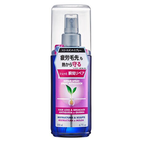 ヘアアイロンなどの熱ダメージやヘアカラーなどで傷んだ髪のための洗い流さないトリートメントスプレー。