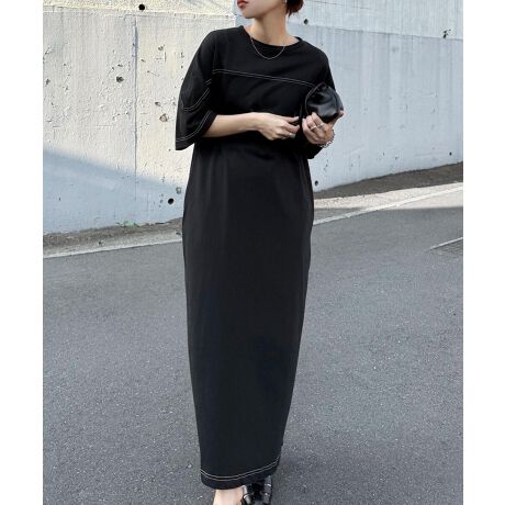 配色ステッチ オーバーサイズ 半袖 Tシャツ ワンピース