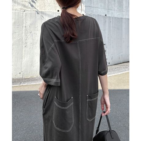 配色ステッチ オーバーサイズ 半袖 Tシャツ ワンピース