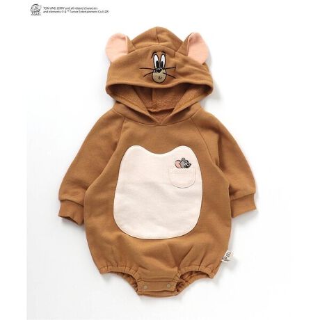 ユーモアたっぷりのアニメーションが子どもに大人気の『トムとジェリー』がアプレレクールにやってきた!トムとジェリーそれぞれキャラクターになりきれるフード付きのボディースーツ。裏毛素材なので赤ちゃんでも着やすい素材感になっています。胸部分にはポケットがあり、ジェリーの胸元には甥っ子のタフィー・トムの胸元にはジェリーがこっそり隠れています♪普段使いはもちろん、ハロウィンにもおすすめのアイテムです☆フェイルパーカーと合わせて兄弟でお楽しみください!