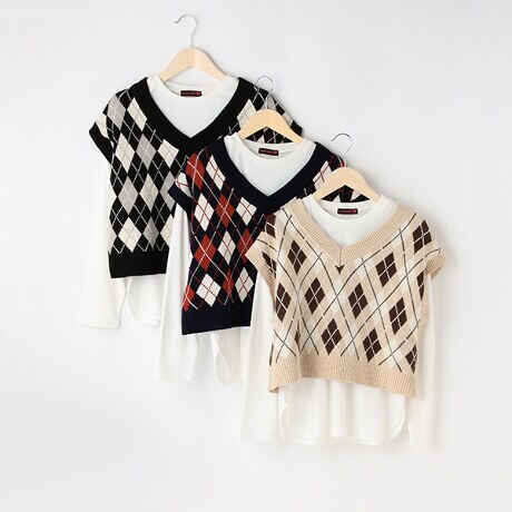 アーガイルベスト長袖TシャツSET