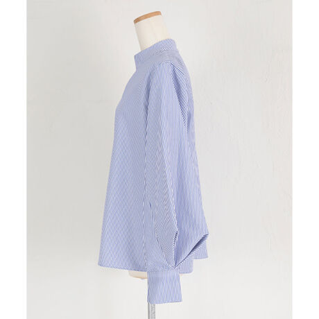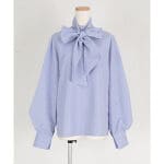 ブラウス自体がハイネックデザインになっており、ボウタイなしでもすっきりと着用いただけます。