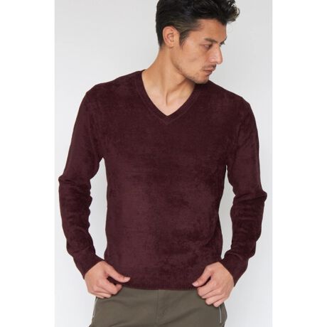 モールヤーンを12Gで編み立てた、強いストレッチ性のある素材で、厚すぎない適度な生地になっています。すっきりとタイトなラインで、シャープに着られるサイジング。