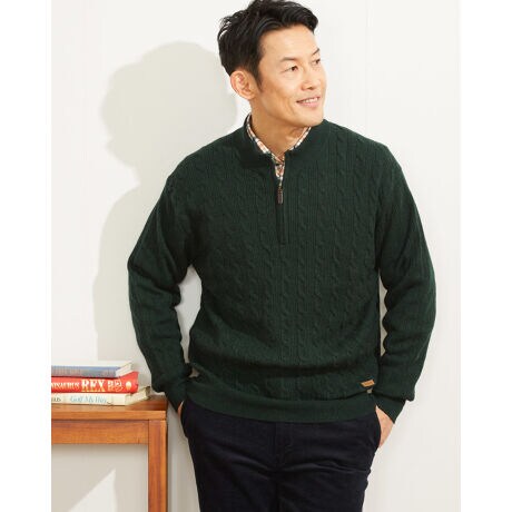 上品なケーブル編みのハーフZIPニットです。