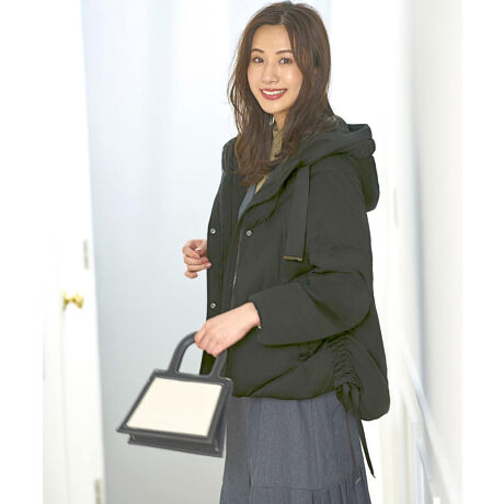 フードとサイドについたグログランテープがポイントの柔らかい着心地のダウン。