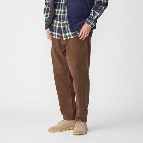 トレンド感ある絶妙なワイド感とテーパードシルエットが特徴のコーデュロイパンツ\n\nバルーンシルエットで仕上げた11ウェールのコーデュロイパンツ。\n腰周りからワタリにかけて丸みがありつつ裾に向かって緩やかにテーパードしており、抜け感がありながらもすっきり見える絶妙なシルエットに仕上げました。\nコーデュロイならではの暖かみのある素材感で、秋冬のスタイリングにぴったりな一本です。\n\n※画像の商品はサンプルです。\n実際の商品と仕様、加工、サイズが若干異なる場合がございます。\n\n※撮影環境による光の当たり具合やパソコンなどの閲覧環境によって、実際の色味と異なって見える場合があります。あらかじめご了承ください。商品の色味は商品単体で撮影した画像をご参照ください。